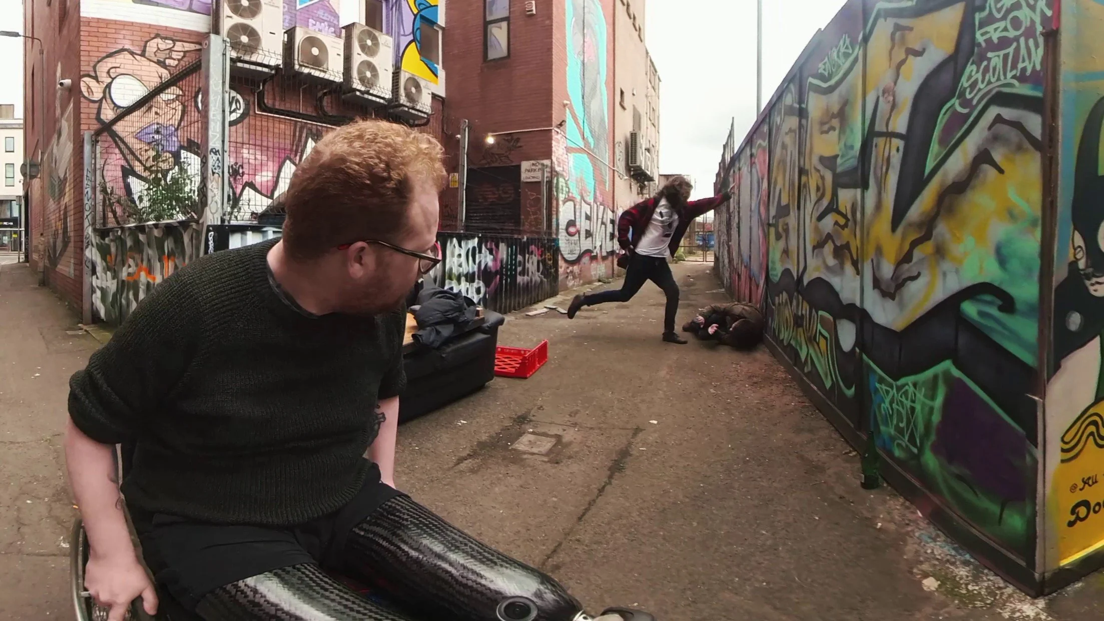HELP VR is a live action 360 degree short film following a recent amputee whose attempt to buy weed spirals into a tense chase through central Belfast. The work blends humour, vulnerability, and drama to explore masculinity, disability, and the struggle to ask for help.